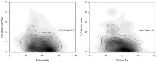 Panel plot of participants reporting symptoms of depression (PHQ-9)7 and anxiety (GAD-7) that exceeded clinical thresholds. 7 Abbreviation: PHQ-9, Patient-health questionnaire-9; GAD-7, Generalized Anxiety Disorder.