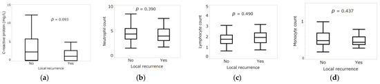 Thus, no correlation was found between any inflammatory marker and local recurrence (Table 2, Table 3 and Table 4) (Figure 3).