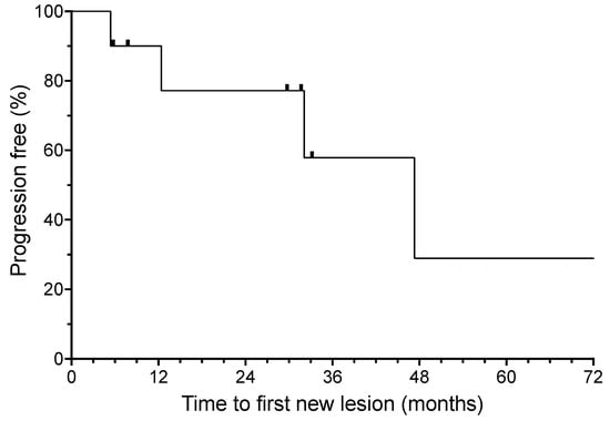 Descriptive statistics were calculated from an Excel spreadsheet (Microsoft, Redmond, WA, USA). Time to first new lesion was calculated using the method of Kaplan and Meier. Comparison of the number of lesions prior to HHI therapy compared to after HHI treatment was performed via paired Student’s t-test.
