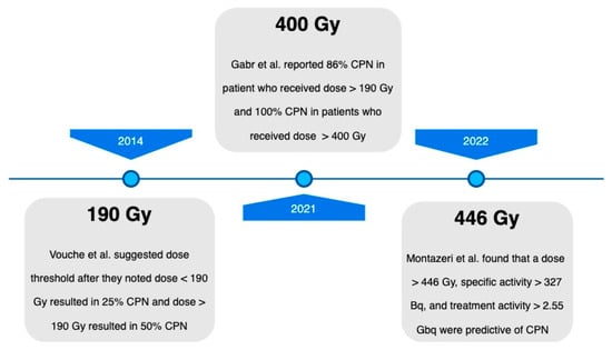 Ultimately, the objective of locoregional therapies should center on achieving CPN, and the recent literature on radiation segmentectomy has consistently demonstrated a curative potential across multiple prospective and retrospective studies. Additionally, it has emphasized its role in the context of downstaging and bridging therapy to liver transplantation. It is noteworthy that radiation segmentectomy has not only proven to be more effective but also maintains an ample safety profile as the dose threshold has increased over the years, as highlighted in Figure 1. Moving forward, it is imperative to refine the treatment parameters to optimize tumor responses and consequently minimize the number of required treatments needed to achieve CPN, and therefore a curative response.