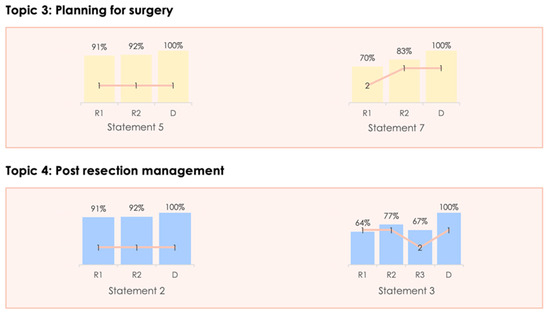 In the second and third Delphi rounds, only recommendations with a consensus <75% or with a decrease in the level of agreement in comparison to the previous Delphi round were included. For the recommendations presented, the cumulative median score, range and percentage of anonymized panelists agreeing with the statement during the previous round were presented to the panel members alongside each amended statement as well as the previous iteration. Panelists could recuse themselves from responding to particular statements if they reported that the topic covered was beyond the scope of their specialty. Panelists were given one week to complete each Delphi round. A reminder was sent via e-mail on the penultimate day of the week and a response level of >80% was required before proceeding to the next round.
