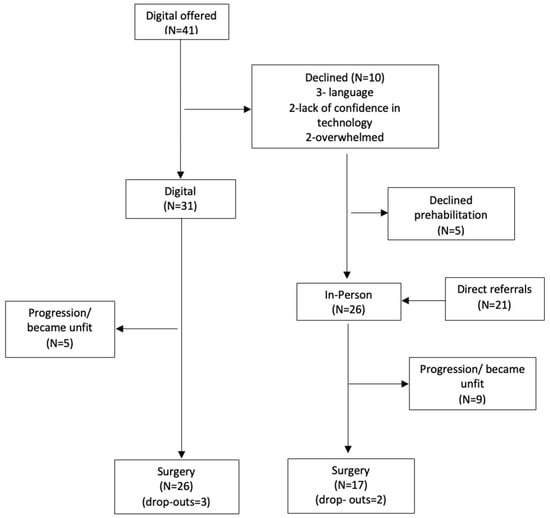 Chicago/Turabian StyleMoorthy, Krishna, Laura J. Halliday, Nigel Noor, Christopher J Peters, Venetia Wynter-Blyth, and Catherine E Urch. 2023. "Feasibility of Implementation and the Impact of a Digital Prehabilitation Service in Patients Undergoing Treatment for Oesophago-Gastric Cancer" Current Oncology 30, no. 2: 1673-1682. https://doi.org/10.3390/curroncol30020128