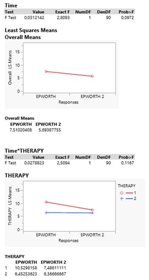 Nevertheless, the overall time interaction between responses did not produce significant effect (p = 0.092), although a decrease in Epworth response was observed after treatment.