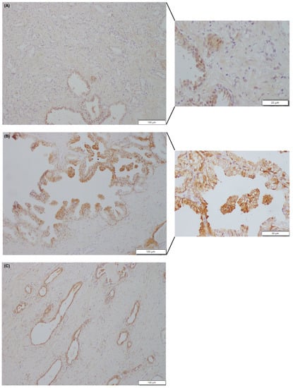 - Al-Maghrabi, J.; Abdelrahman, A.S.; Ghabrah, T.; Butt, N.S.; Al-Maghrabi, B.; Khabaz, M.N. Immunohistochemical expression of galectin-3 is significantly associated with grade, stage and differentiation of endometrial carcinomas. Pathol. Res. Pract. 2017, 213, 348–352. [Google Scholar] [CrossRef]