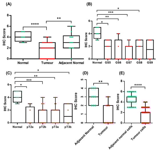 2.2. Immunohistochemical Evaluation of Galectin-3 Expression and Localization in Normal and Tumour Prostate Tissue (In Vivo Analysis)