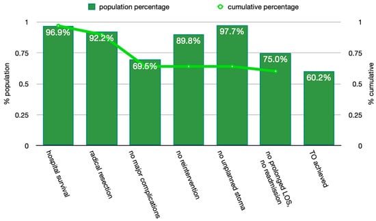 Composite outcome measures, on the other hand, may be more meaningful and clinically relevant [,,,,]. They better reflect the multidimensional surgical practice, prevent indicator-driven practice and are a more appropriate summary of overall hospital performance []. Particularly for oncological patients, optimisation of cancer care pathways can be beneficial in terms of overall survival and quality of life.