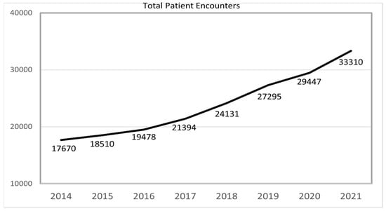 Total patient encounters from 2014 to 2021.