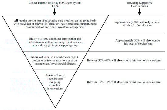 - Loscalzo, M.J.; Bultz, B.D.; Clark, K.; Jacobsen, P.B. Building Supportive Care Programs in a Time of Great Opportunity. In Psycho-Oncology; Holland, J.C., Breitbart, W.S., Jacobsen, P.B., Loscalzo, M.J., McCorkle, R., Butow, P.N., Eds.; Oxford University Press: Oxford, UK, 2015; pp. 673–678. ISBN 978-0-19-936331-5. [Google Scholar]