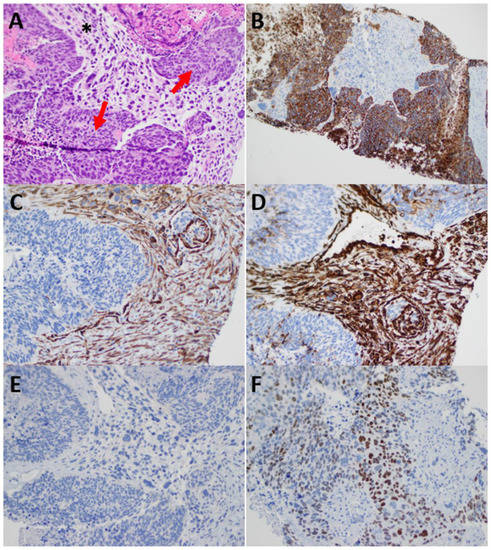 - Feng, L.; Cai, D.; Muhetaer, A.; Yang, Y.-L.; Ren, F.; Yishake, M.; Zhang, H.; Fang, Y.; Wushou, A. Spindle cell carcinoma: The general demographics, basic clinico-pathologic characteristics, treatment, outcome and prognostic factors. Oncotarget 2017, 8, 43228–43236. [Google Scholar] [CrossRef] [PubMed]