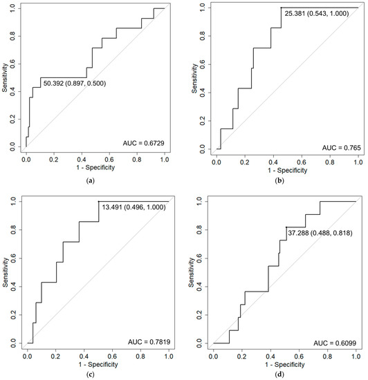 - Youden, W.J. Index for rating diagnostic tests. Cancer 1950, 3, 32–35. [Google Scholar] [CrossRef] [PubMed]