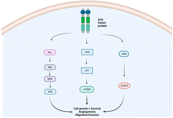 - Huang, H. Anaplastic Lymphoma Kinase (ALK) Receptor Tyrosine Kinase: A Catalytic Receptor with Many Faces. Int. J. Mol. Sci. 2018, 19, 3448. [Google Scholar] [CrossRef]