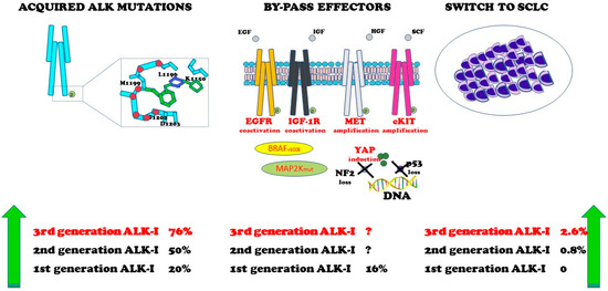 - Choi, Y.L.; Soda, M.; Yamashita, Y.; Ueno, T.; Takashima, J.; Nakajima, T.; Yatabe, Y.; Takeuchi, K.; Hamada, T.; Haruta, H.; et al. EML4-ALK Mutations in Lung Cancer That Confer Resistance to ALK Inhibitors. N. Engl. J. Med. 2010, 363, 1734–1739. [Google Scholar] [CrossRef] [PubMed]