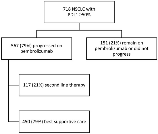 Consort diagram of NSCLC with PDL1 ≥ 50% population treated with pembrolizumab.