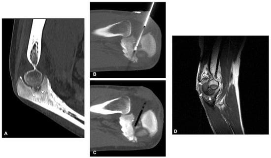- Izzo, A.; Zugaro, L.; Fascetti, E.; Bruno, F.; Zoccali, C.; Arrigoni, F. Management of Osteoblastoma and Giant Osteoid Osteoma with Percutaneous Thermoablation Techniques. J. Clin. Med. 2021, 10, 5717. [Google Scholar] [CrossRef]