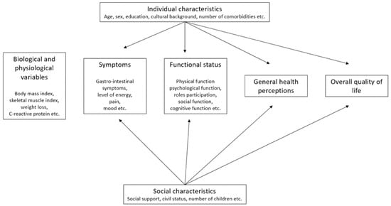 QOL is a multidimensional construct that consists of several domains, among which are physical, mental, and social ones []. While there is agreement among the many definitions of QOL, there are also differences. The WHO definition of QOL is “individuals’ perceptions of their position in life in the context of the culture and value systems in which they live and in relation to their goals, expectations, standards and concerns”. QOL is referred to as the individual’s satisfaction with life and perception of well-being []. QOL is defined as the subjective perception of satisfaction or happiness in the relevant domains of the individual []. Revicki [] suggests that QOL represents “a broad range of human experiences related to one’s overall well-being”. Other authors have looked at a narrow definition that is more directly related to the health of the individual. For instance, Csaba et al. [] recognize two fundamental components of QOL. The first is the ability to execute daily activities, referring to physical, psychological, and social well-being (individual’s perception of their own condition). The second component refers to the degree of satisfaction regarding one’s level of functionality and control capacity in symptom evaluation and treatment []. The latter component, which health research usually refers to as “health-related quality of life”, is the focus of this review. In the interest of convenience, we will refer to this concept as QOL. When considering QOL specifically in cancer patients, some authors suggest that it describes a “patients’ appraisal of and satisfaction with their current level of functioning compared to what they perceive to be possible or ideal” [].
