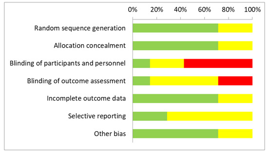 - Higgins, J.P.; Altman, D.G.; Gøtzsche, P.C.; Jüni, P.; Moher, D.; Oxman, A.D.; Savovic, J.; Schulz, K.F.; Weeks, L.; Sterne, J.A. The Cochrane Collaboration’s tool for assessing risk of bias in randomised trials. BMJ 2011, 343, d5928. [Google Scholar] [CrossRef]
