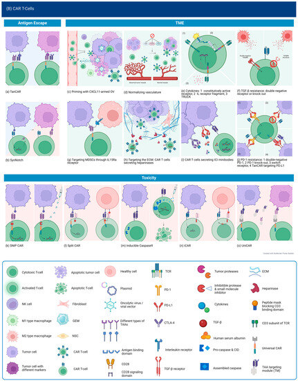 166. Moghanloo, E.; Mollanoori, H.; Talebi, M.; Pashangzadeh, S.; Faraji, F.; Hadjilooei, F.; Mahmoodzadeh, H. Remote Controlling of CAR-T Cells and Toxicity Management: Molecular Switches and next Generation CARs. Transl. Oncol. 2021, 14, 101070. [Google Scholar] [CrossRef]