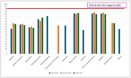 Examining the current total coverage rates in Table 1, 6 out of 11 provinces/territories have HPV vaccine completion rates below 65%. We can estimate a 64% national HPV vaccination completion rate in Canada, which is far from the goal of 90% HPV vaccination coverage for Canadians by age 17 in 2025. Moreover, although HPV vaccination programs in Canada are school-based, the coverage rates remain lower than those observed in other countries with similar school-based vaccination strategies, indicating that additional efforts may be needed to improve uptake and achieve higher vaccination rates. This highlights the importance of coordinated efforts and resource pooling across Canada. While it is easy to point to post-COVID-19 pandemic vaccine hesitancy and vaccine fatigue, the more significant issues are logistical and practical barriers, including the fragmentation of the Canadian healthcare system and strategic partners. We must establish transparency and not duplicate resources. A 2020 report found that across the survey population of 2697 Canadians, only 29% of respondents had received at least one dose of the HPV vaccine [48]. Moreover, CPAC commissioned the Urban Public Health Network to coordinate a quality improvement project with Canada’s school-based HPV immunization programs. But to date, and to the best of our knowledge, the final report, as well as actional items from phase 2 of this project (which received funding of CAD two million from the CPAC), is not available in the public domain [49,50]. Taken together, these factors suggest we need to increase transparency and inter-disciplinary collaborations, e.g., those working in behavioral and implementation sciences, dentistry, infectious diseases, oncology, pharmacy, public health, sexology, and others across Canada in order to (a) get people talking about HPV vaccination, (b) educate individuals on this crucial cancer prevention vaccine, and (c) increase HPV vaccine acceptability Canada-wide.