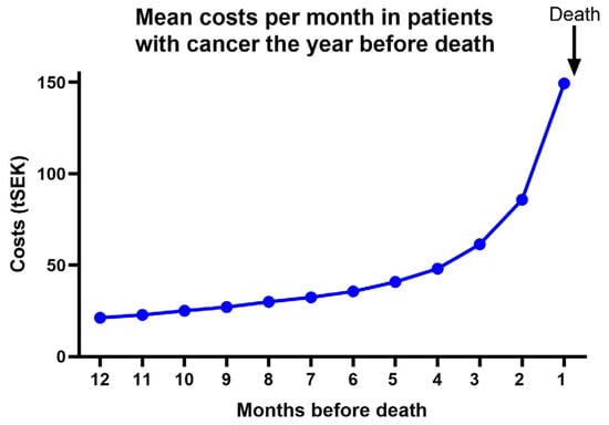 In regard to EOL expenditures for persons with cancer, the total health care expenditures are high during the last year of life [1] and are higher for younger, as well as for married, persons [5,6], whereas some data indicate that the mean costs might be somewhat lower for women [1,6,7]. In studies on comorbidity, data are diverging, although comorbidity seems to be associated with higher costs [5,6,8].