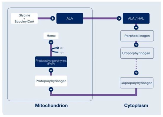 Hexaminolevulinate (HAL)’s mechanism of action. This diagram was sourced from the Cysview Photocure Product Information Fact Sheet.