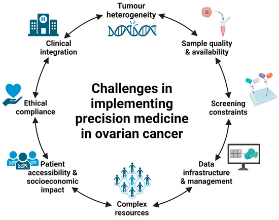 A summary of the challenges associated with implementing precision medicine screening for ovarian cancer samples. Created with BioRender.com.