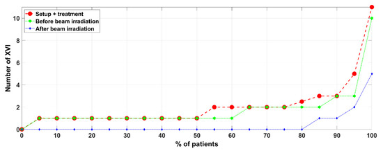 - Group C (16 patients, 80 sessions)—at least one supplementary setup control was performed and needed during the delivery of the treatment. No other setup controls were needed during the setup phase.