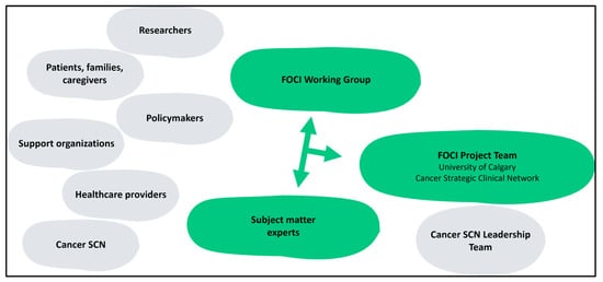 FOCI in Alberta Project Team: The FOCI Project Team, composed of members of the Cancer SCN and researchers affiliated with the University of Calgary, played a pivotal role throughout the engagement process. They were responsible for developing data projection models and detailed summaries that served as a foundational tool for the engagement. They also facilitated all engagement activities. This team actively solicited information, sought expert opinions, and conducted in-depth analyses to contribute to the collaborative and iterative content development process. The insights gained from these engagement activities informed the drafting of actionable recommendations, which were consolidated into the comprehensive FOCI report []. Additionally, the FOCI Project Team handled the dissemination of the report and advocated for its findings and recommendations. Regular touchpoints with the Cancer SCN Leadership Team ensured that the FOCI Project Team’s work remained aligned with the broader goals of the Cancer SCN and facilitated connections with diverse stakeholders as required.
