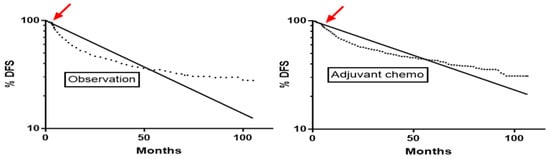 - Arriagada, R.; Dunant, A.; Pignon, J.P.; Bergman, B.; Chabowski, M.; Grunenwald, D.; Kozlowski, M.; Le Pechoux, C.; Pirker, R.; Pinel, M.I.; et al. Long-term results of the international adjuvant lung cancer trial evaluating adjuvant Cisplatin-based chemotherapy in resected lung cancer. J. Clin. Oncol. 2010, 28, 35–42. [Google Scholar] [CrossRef] [PubMed]