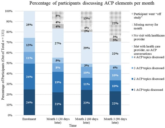 Percentage of participants and number of ACP elements discussed per month (n = 131).