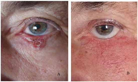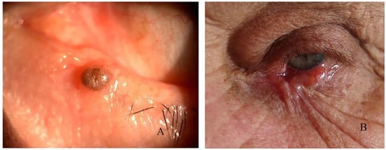 - Deprez, M.; Uffer, S. Clinicopathological features of eyelid skin tumors. a retrospective study of 5504 cases and review of literature. Am. J. Dermatopathol. 2009, 31, 256–262. [Google Scholar] [CrossRef] [PubMed]