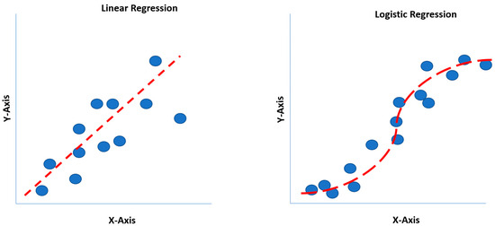 One of the limitations of a linear regression model is that a straight line is forced to match data points for an outcome, where the straight line may not pass through most data points [8,14]. Although linear regression may not pass through most data points, it may still generalize better than polynomial regression, which may overfit the dataset. Logit and probit functions generate S-shaped curves, readily identifying the largest data points on an XY-axis (X: independent variable; Y: dependent variable) (Figure 2) [20].