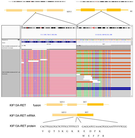 Tumor tissue NGS showed a rare KIF13A-RET fusion involving exon 19 of KIF13A and exon 12 of RET.