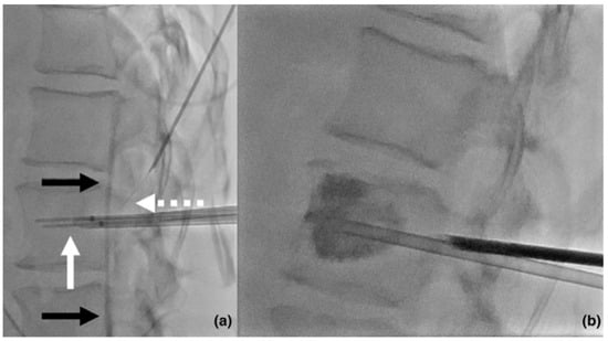 - Tomasian, A.; Hillen, T.; Chang, R.; Jennings, J. Simultaneous Bipedicular Radiofrequency Ablation Combined with Vertebral Augmentation for Local Tumor Control of Spinal Metastases. Am. J. Neuroradiol. 2018, 39, 1768–1773. [Google Scholar] [CrossRef]