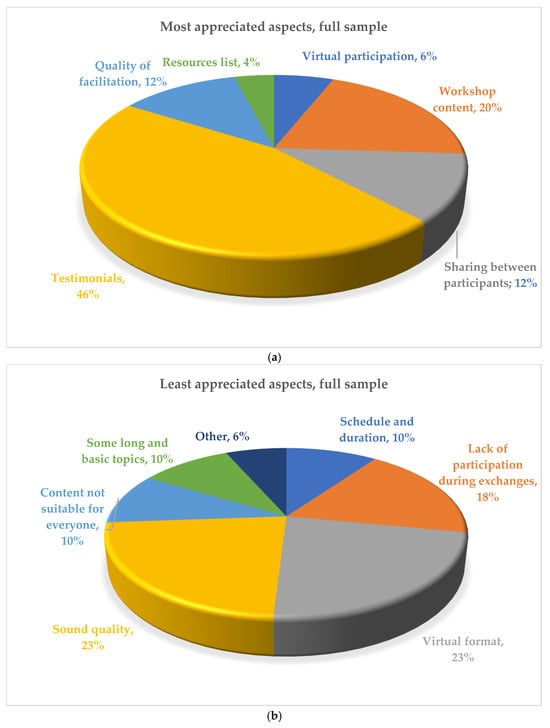 Description of the participant’s most (a) and least (b) appreciated aspects of the workshops emerged from the open-ended questions of the satisfaction questionnaire (n = 20).