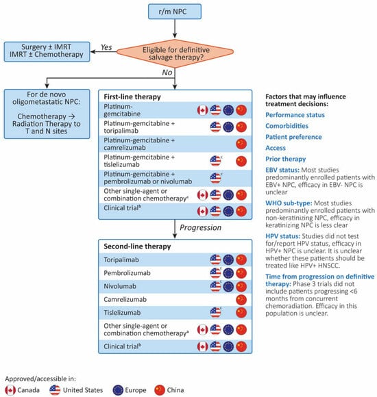 Spreafico, A.; Winquist, E.; Ho, C.; O’Sullivan, B.; Bouganim, N.; Chua, N.; Doucette, S.; Siu, L.L.; Hao, D. A Canadian Perspective on Systemic Therapy for Recurrent or Metastatic Nasopharyngeal Carcinoma. Curr. Oncol. 2025, 32, 48. https://doi.org/10.3390/curroncol32010048