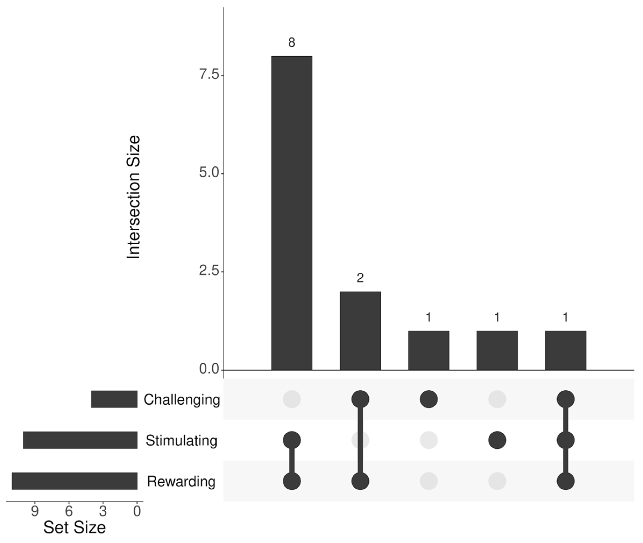 Codes | Beneficial | Satisfying | Relational | Educational | Stimulating | Limiting | Demanding |