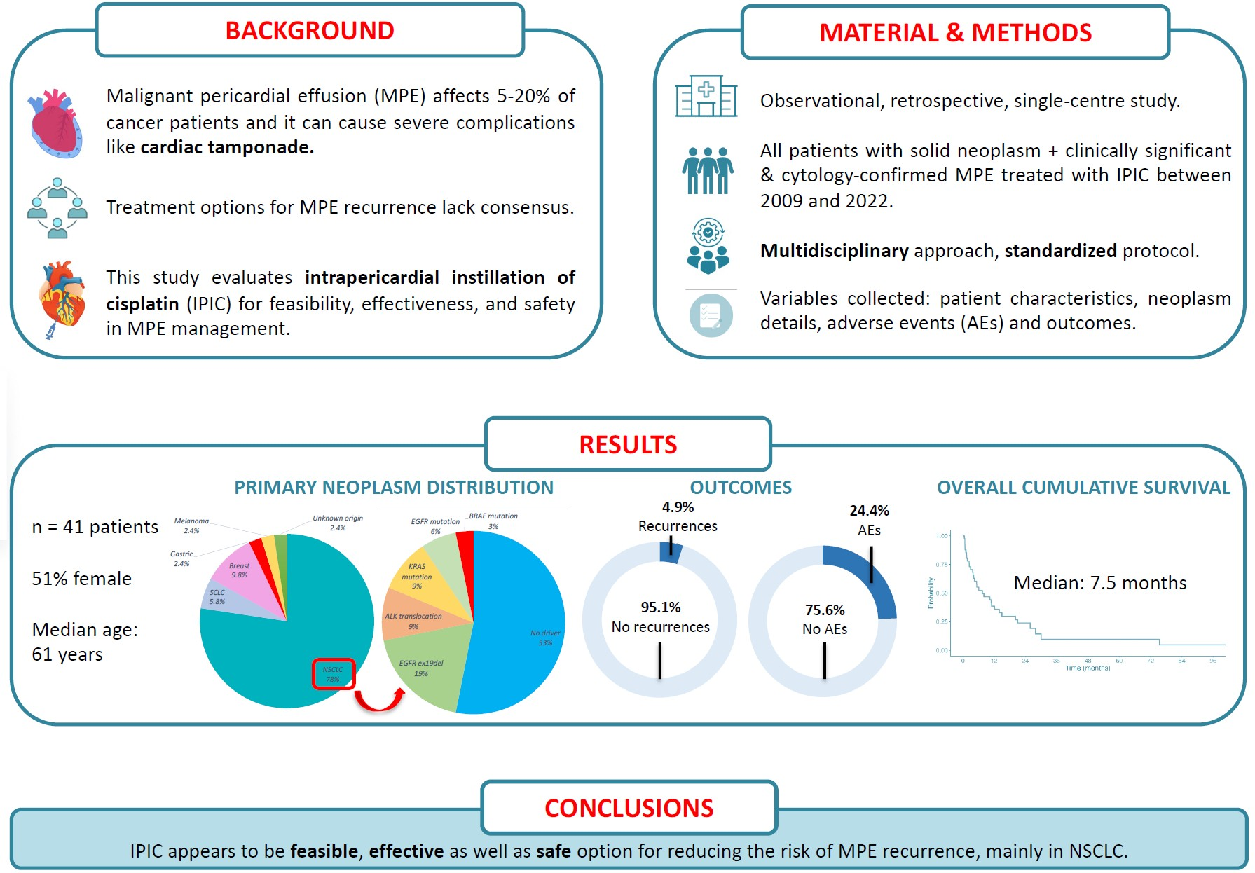 Muñoz-Carrillo, F.J.; Reyes, R.M.; Pesántez, D.; Carrera, G.; Cascos, E.; Castro, P.; Fernández-Méndez, S.; Font, C.; González-Aguado, L.; Grafiá, I.; et al. Retrospective Cohort Study of Intrapericardial Cisplatin for Risk Reduction of Malignant Pericardial Effusion Recurrence. Curr. Oncol. 2025, 32, 568. https://doi.org/10.3390/curroncol32100568