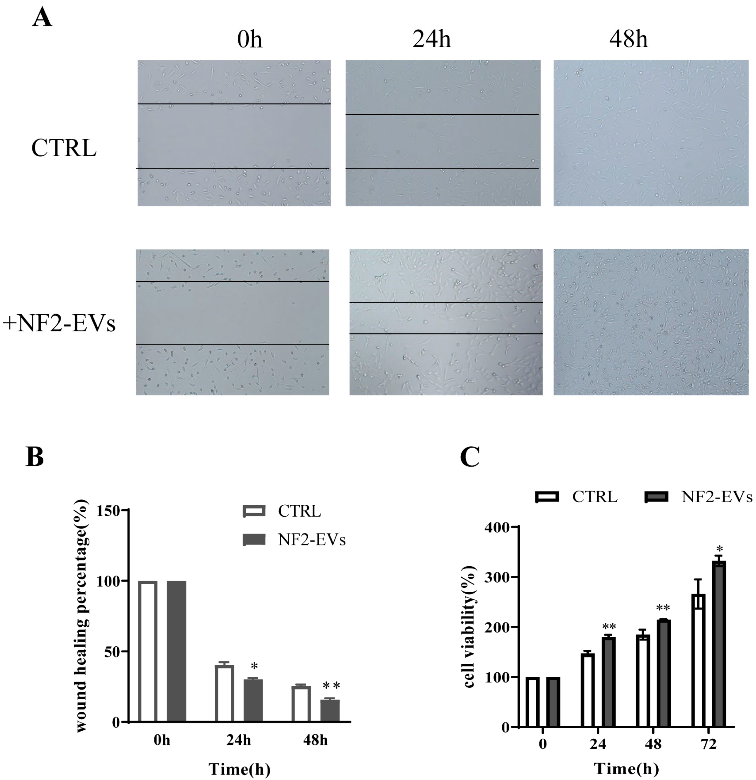 3.4. NF2-EVs Enhance NF2-Associated Schwannoma Cells Proliferation