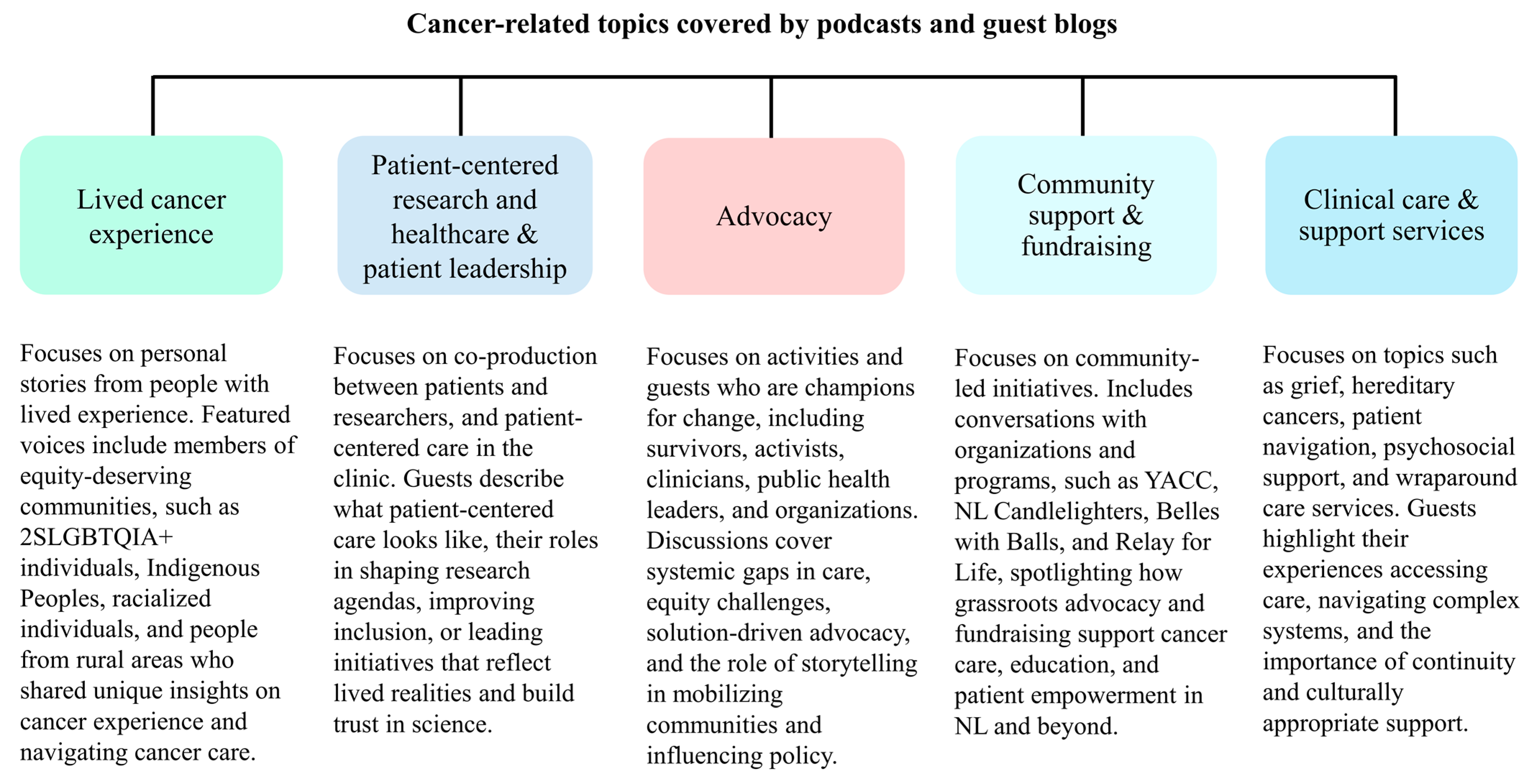 Savas, S.; Crichton, K.; Wiseman, J.; Taylor-Cutting, J.; Slaney, T. Podcasting and Blogging as Tools to Engage with the Public on the Topic of Cancer: Experience and Perspectives of the Public Interest Group on Cancer Research. Curr. Oncol. 2025, 32, 579. https://doi.org/10.3390/curroncol32100579