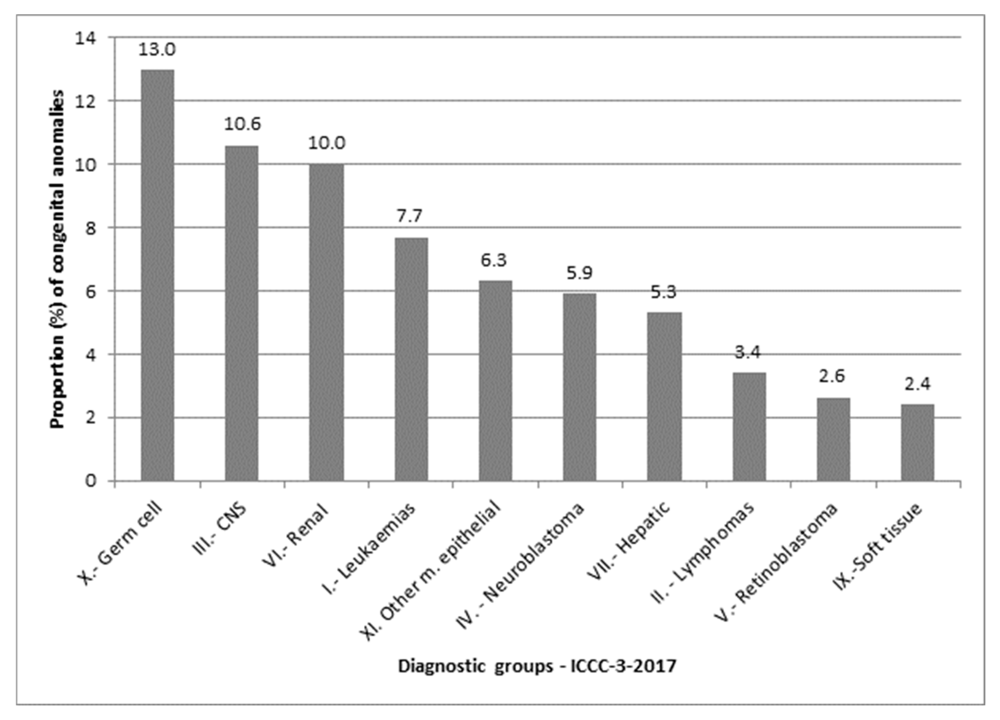 APA StyleMartos, C., García-Villodre, L., Barrachina-Bonet, L., Páramo-Rodríguez, L., Arribas-Díaz, B., Torró-Gómez, A., Jeghalef El Karoui, N., Sabater, C., & Cavero-Carbonell, C. (2025). Risk of Childhood Cancer in Children with Congenital Anomalies and Their Impact on Survival: A Population-Based Registry Approach. Current Oncology, 32(11), 621. https://doi.org/10.3390/curroncol32110621