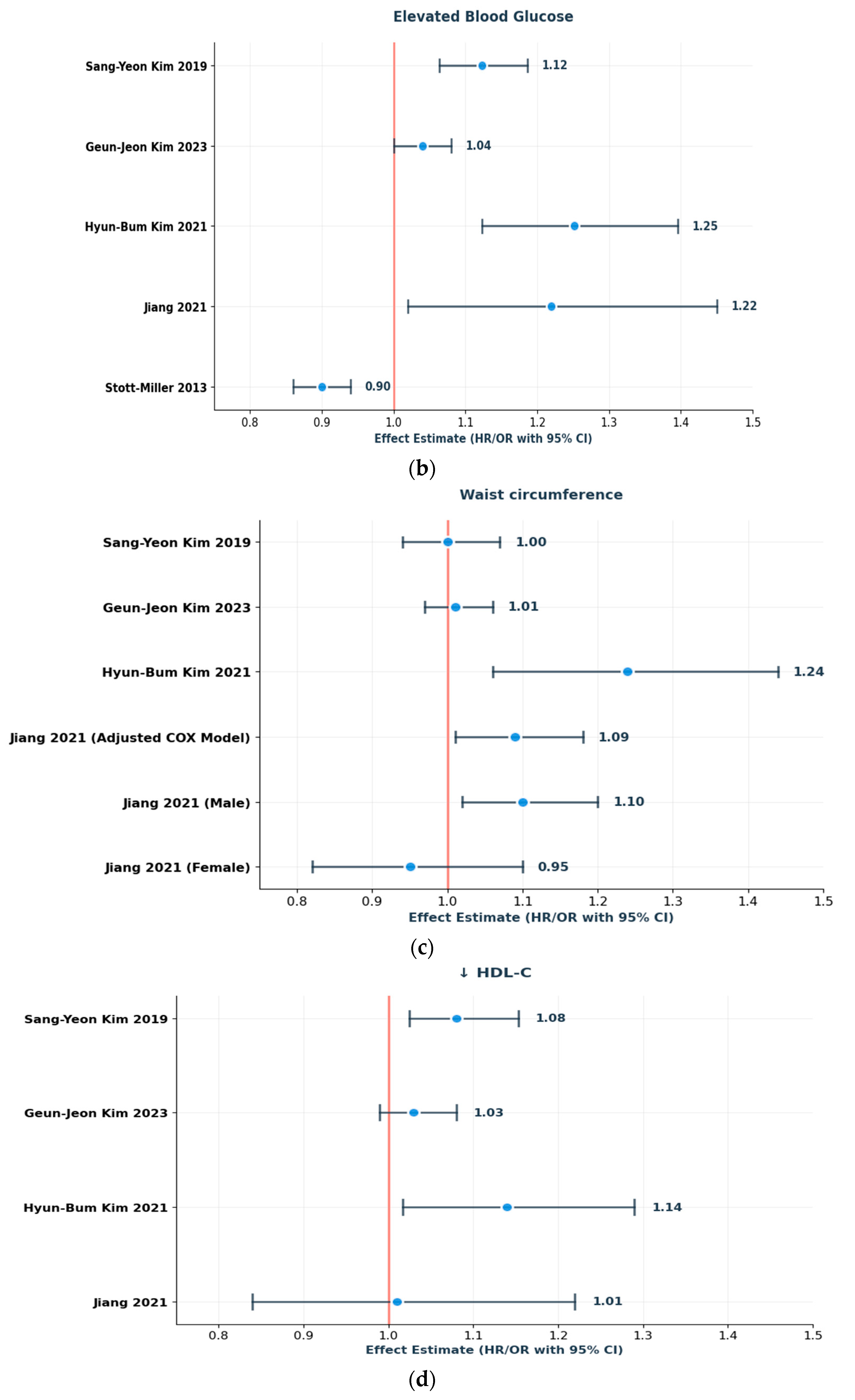 Figure 2, the three Korean cohort studies offered the most direct evidence to support a positive association between MetS and laryngeal cancer. Sang-Yeon Kim’s [