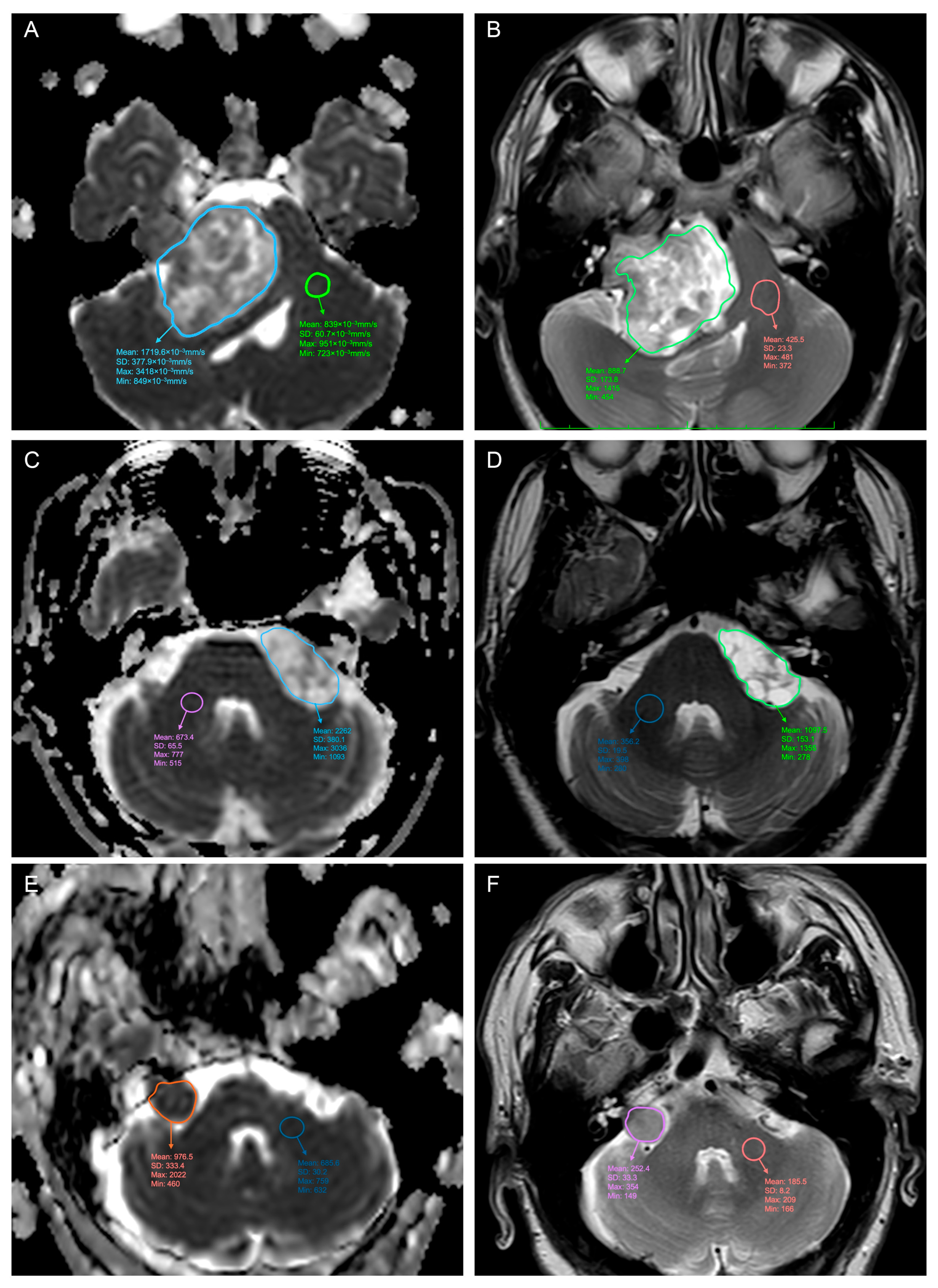- Freeman, L.M.; Ung, T.H.; Thompson, J.A.; Ovard, O.; Olson, M.; Hirt, L.; Hosokawa, P.; Thaker, A.; Youssef, A.S. Refining the Predictive Value of Preoperative Apparent Diffusion Coefficient (ADC) by Whole-Tumor Analysis for Facial Nerve Outcomes in Vestibular Schwannomas. Acta Neurochir. 2024, 166, 168. [Google Scholar] [CrossRef] [PubMed]