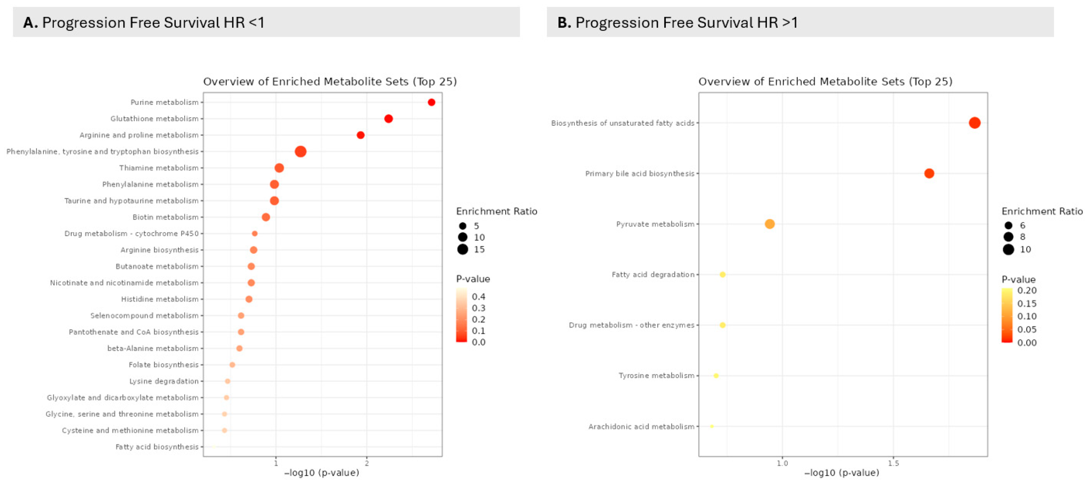 48]. In the present study, it has been associated with PFS, as has SPHK1 (Sphingosine Kinase 1), which is responsible for rendering S1P a bioactive lipid. Elevations in S1P and SPHK1 were both associated with a higher risk of progression in the analysis; however, this association was not statistically significant in the Kaplan–Meier survival analysis. SPHK1 and S1P provide an instrumental connection to lipid metabolism, as well as MSR1, the metabolites p-cresol and 7-HOCA, and a means of validation in other biospecimens and datasets.