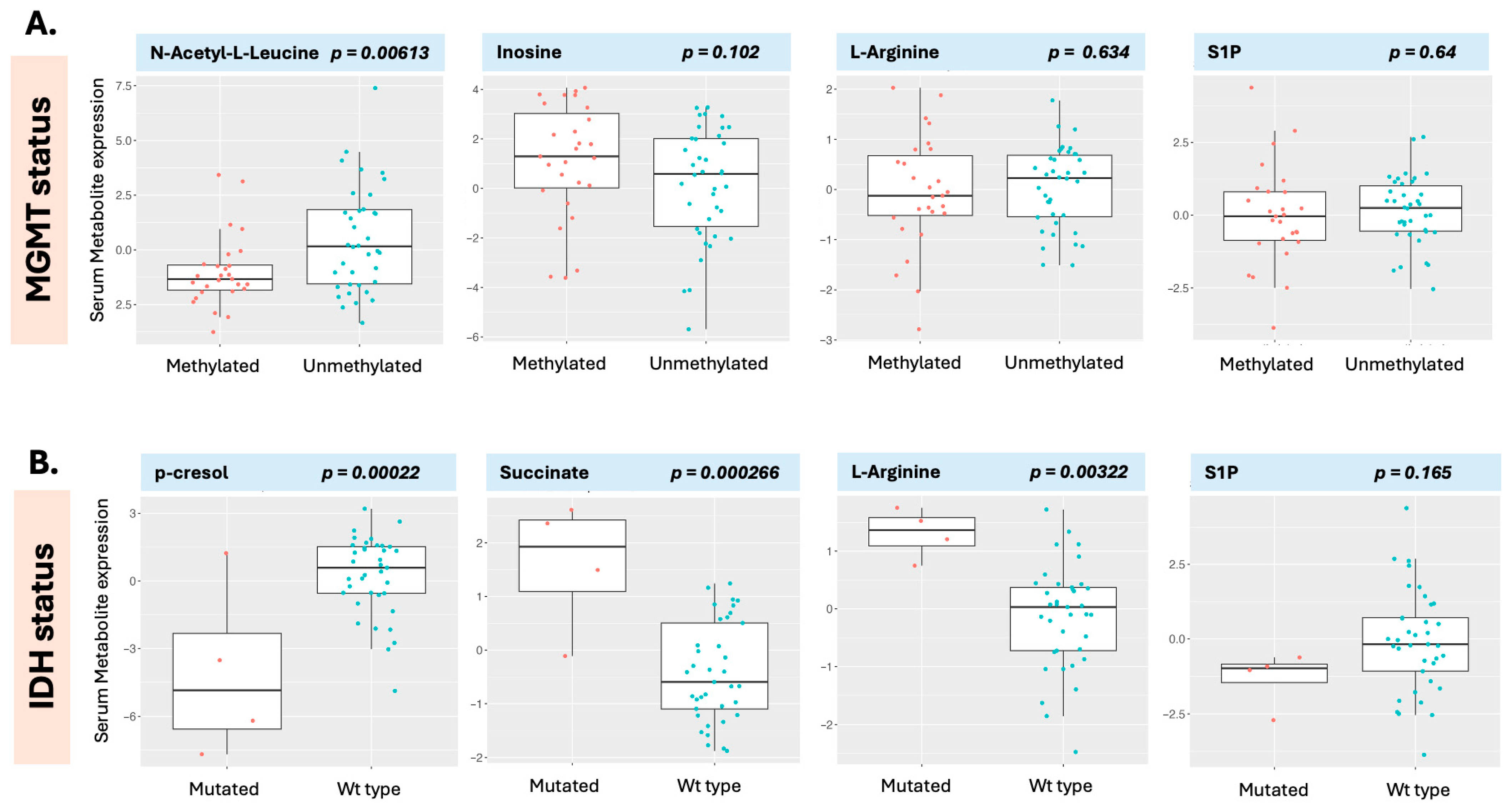 We identified serum p-cresol as being associated with outcome, as well as IDH status, in the present study. P-Cresol has also been previously identified as a potential marker of IDH status in CSF [