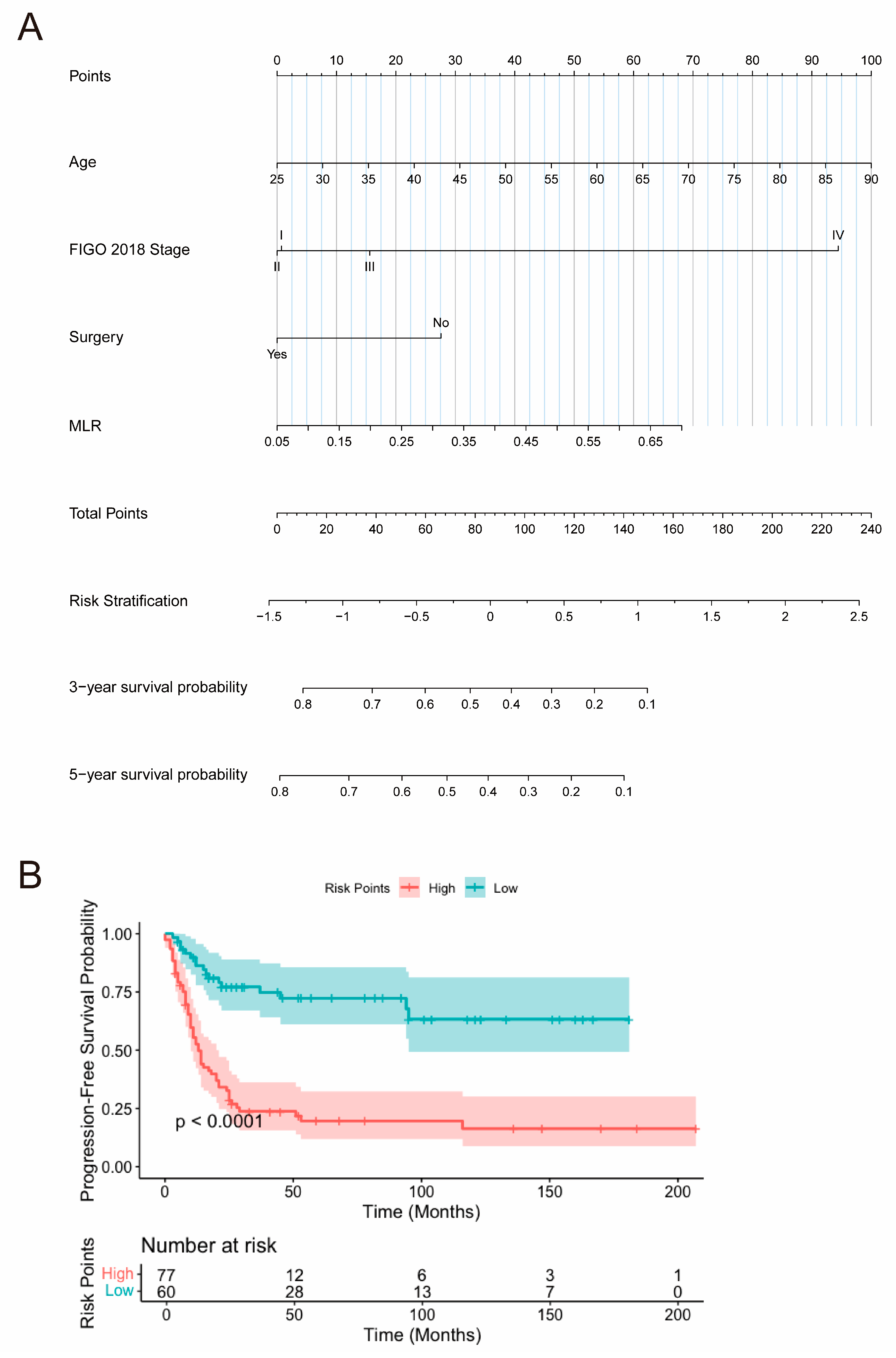 | MLR | 19.6 | 3.95, 97.2 | <0.001 | 1.01 | 1.00, 1.01 | 0.005 | 12.5 | 2.08, 75.3 | 0.009 | 1.68 | 0.07, 42.0 | 0.75 |