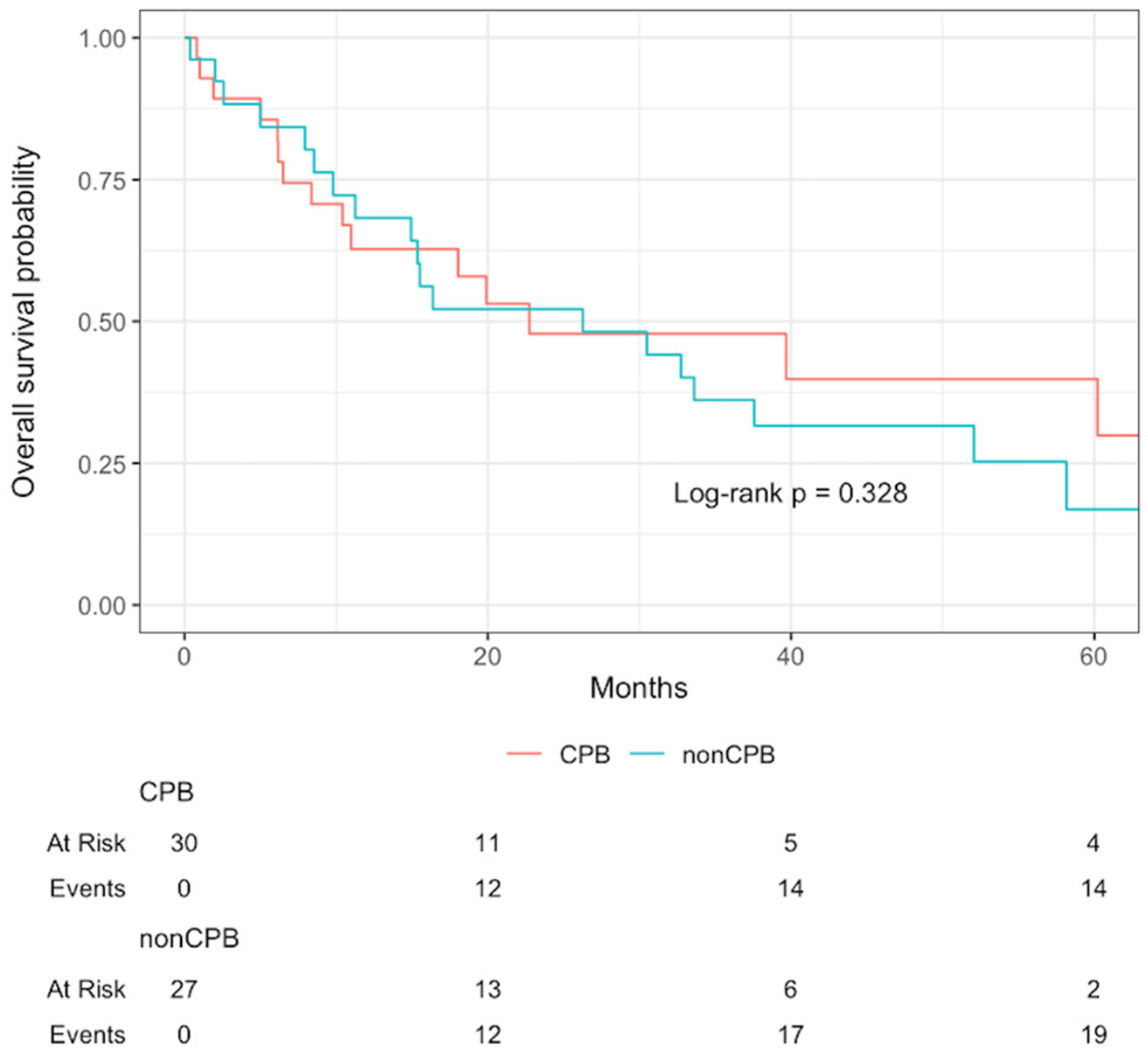 | CPB (n = 30) | Non-CPB (n = 27) | p | |