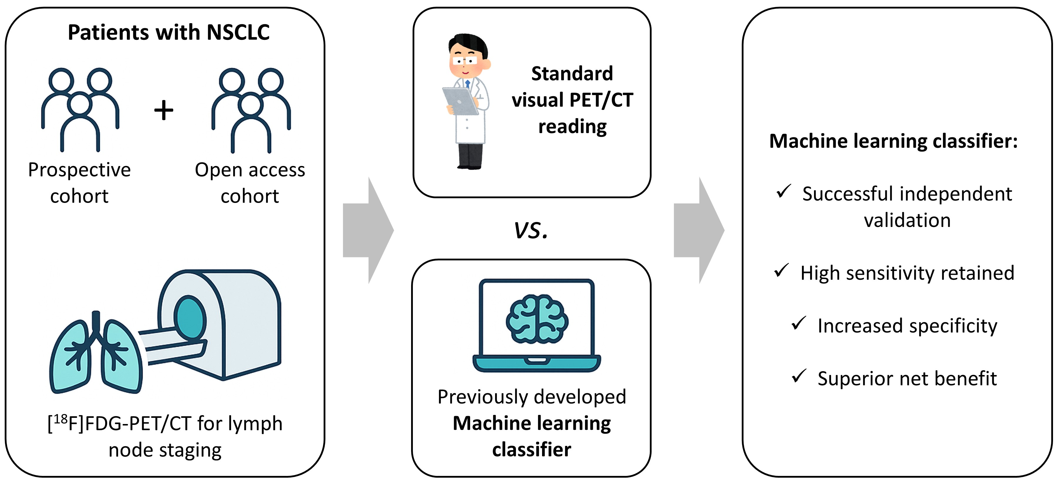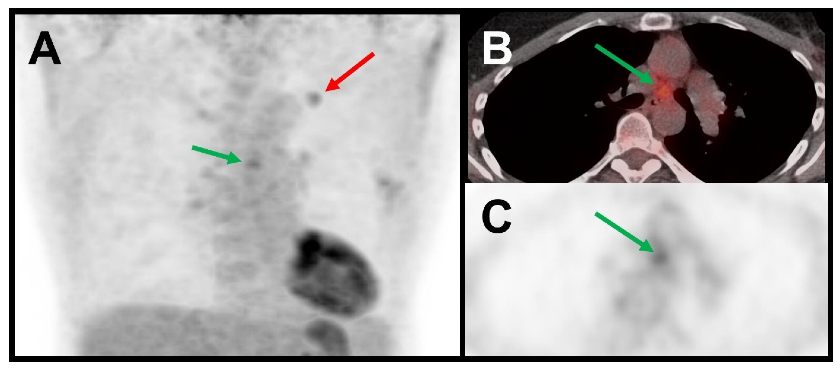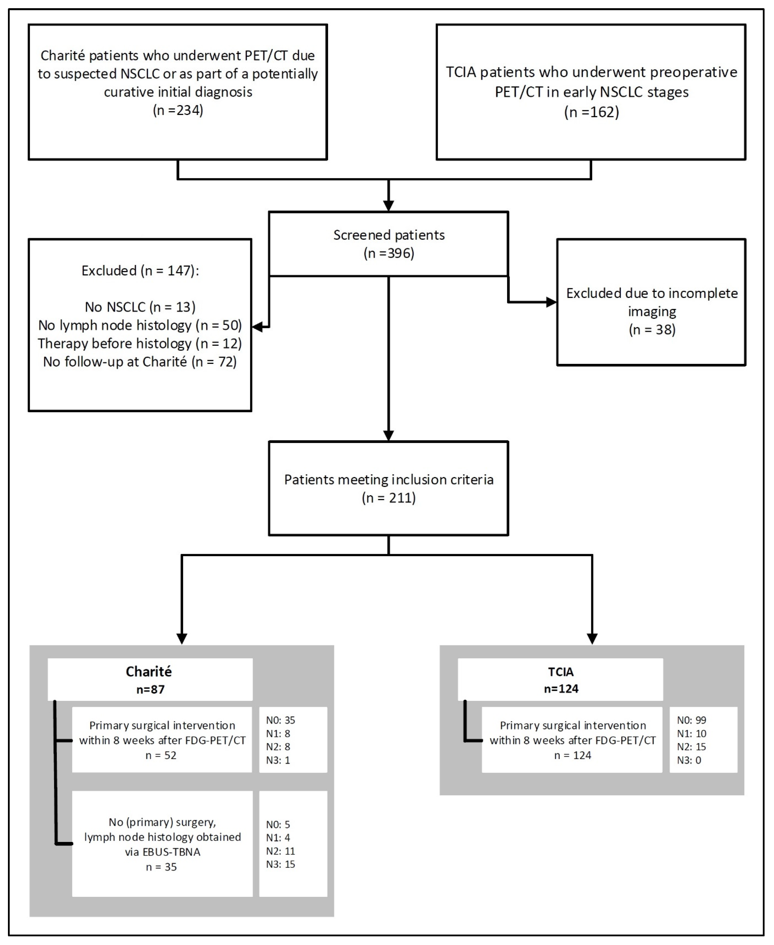 - Laros, S.S.A.; Dieckens, D.; Blazis, S.P.; van der Heide, J.A. Machine Learning Classification of Mediastinal Lymph Node Metastasis in NSCLC: A Multicentre Study in a Western European Patient Population. EJNMMI Phys. 2022, 9, 66. [Google Scholar] [CrossRef] [PubMed]