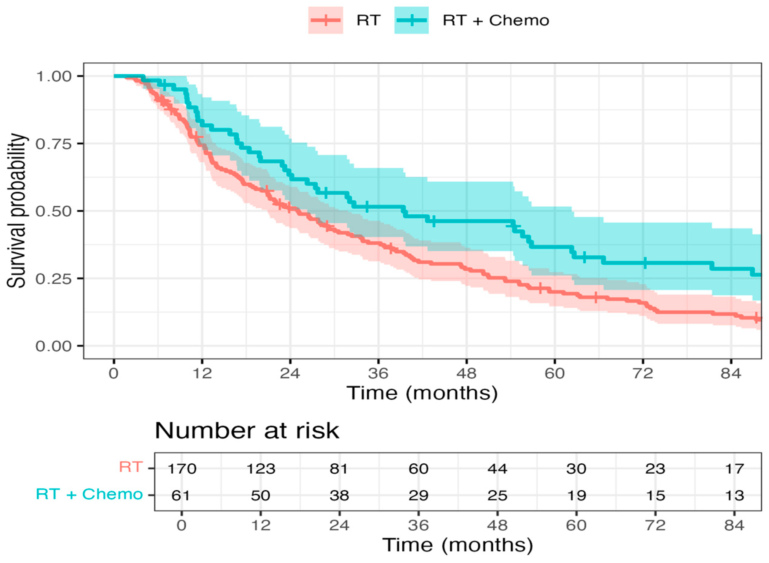 | RT (n = 170) | Chemo + RT (n = 61) | Overall (n = 231) | p-Value | |