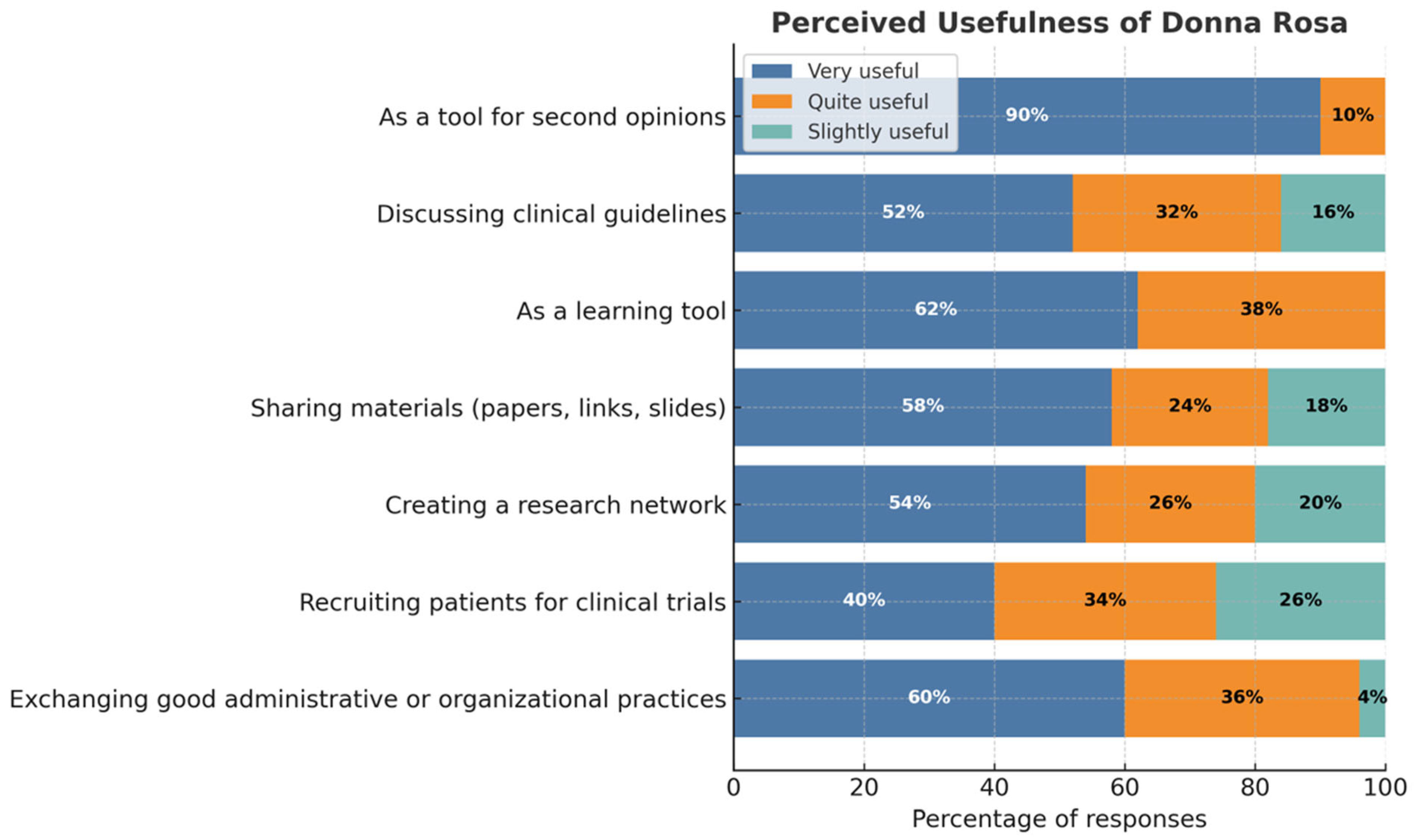 Ferro, A.; Atzori, F.; Angiolini, C.; Bortolin, M.; Cortesi, L.; Fabi, A.; Fiorio, E.; Garrone, O.; Gianni, L.; Giordano, M.; et al. DonnaRosa Project: Exploring Informal Communication Practices Among Breast Cancer Specialists. Curr. Oncol. 2025, 32, 704. https://doi.org/10.3390/curroncol32120704