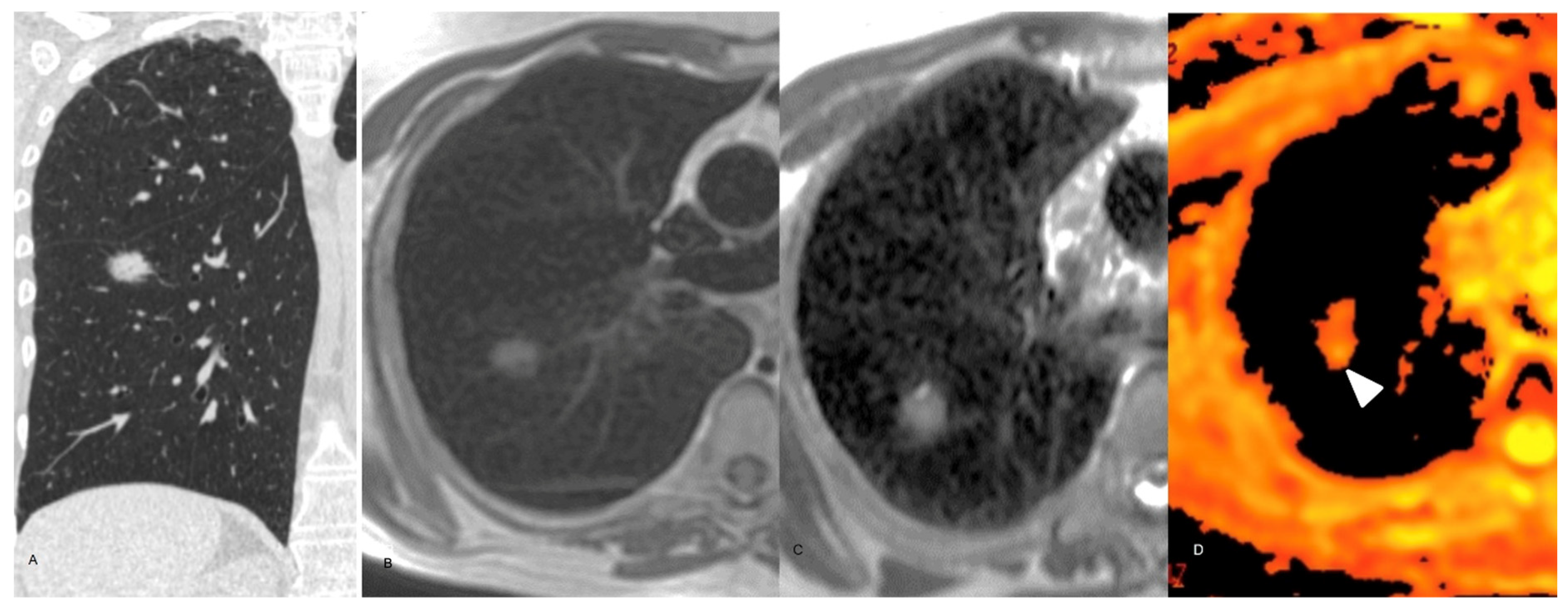 - Dell, T.; Feisst, A.; Ramig, O.; Layer, Y.; Mesropyan, N.; Isaak, A.; Pieper, C.; Kupczyk, P.; Luetkens, J.; Thomas, D.; et al. MRI based volumetric lung nodule assessment—A comparison to computed tomography. Front. Med. 2025, 12, 1491960. [Google Scholar] [CrossRef] [PubMed] [PubMed Central]